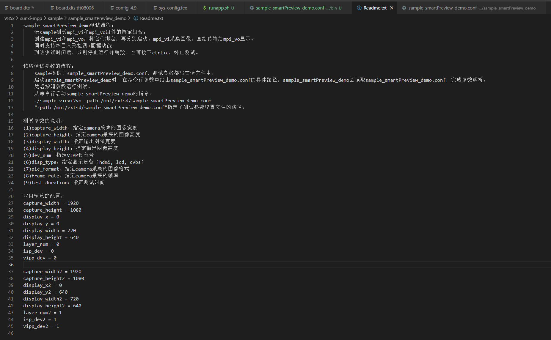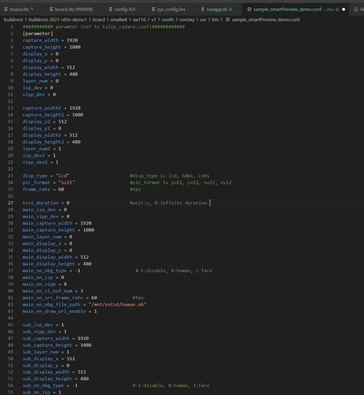 480的画面,由于例程的.conf本来设置的参数跟readme里面描述的有差异,我自己按照readme进行的修改,但是还是跑不起来,设置的参数如图