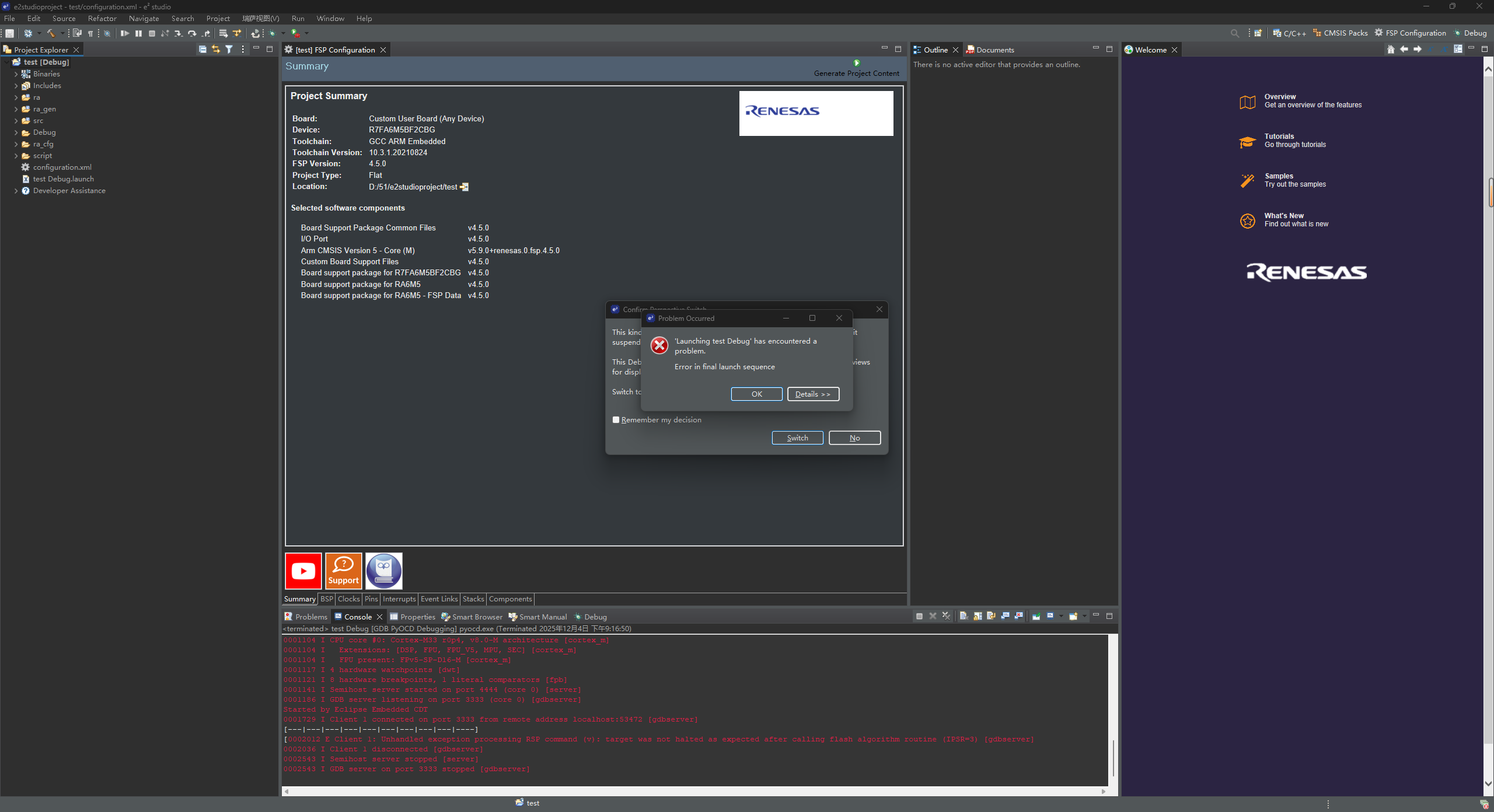 在使用瑞萨RA6M5时新建工程按照教程配置好后,启动调试就报错了