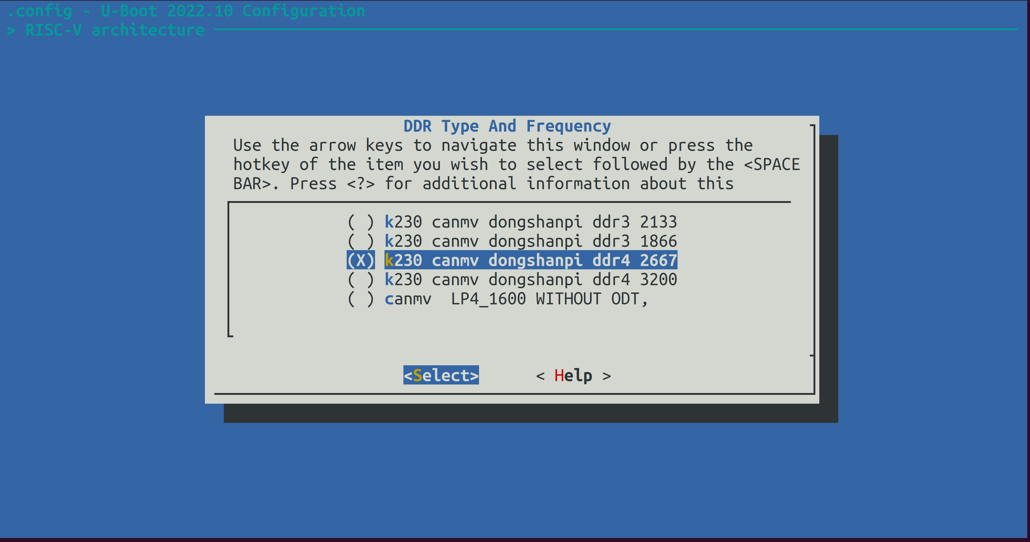 进入 > RISC-V architecture 找到 DDR Type And Frequency 类型,原来是ddr3 1866